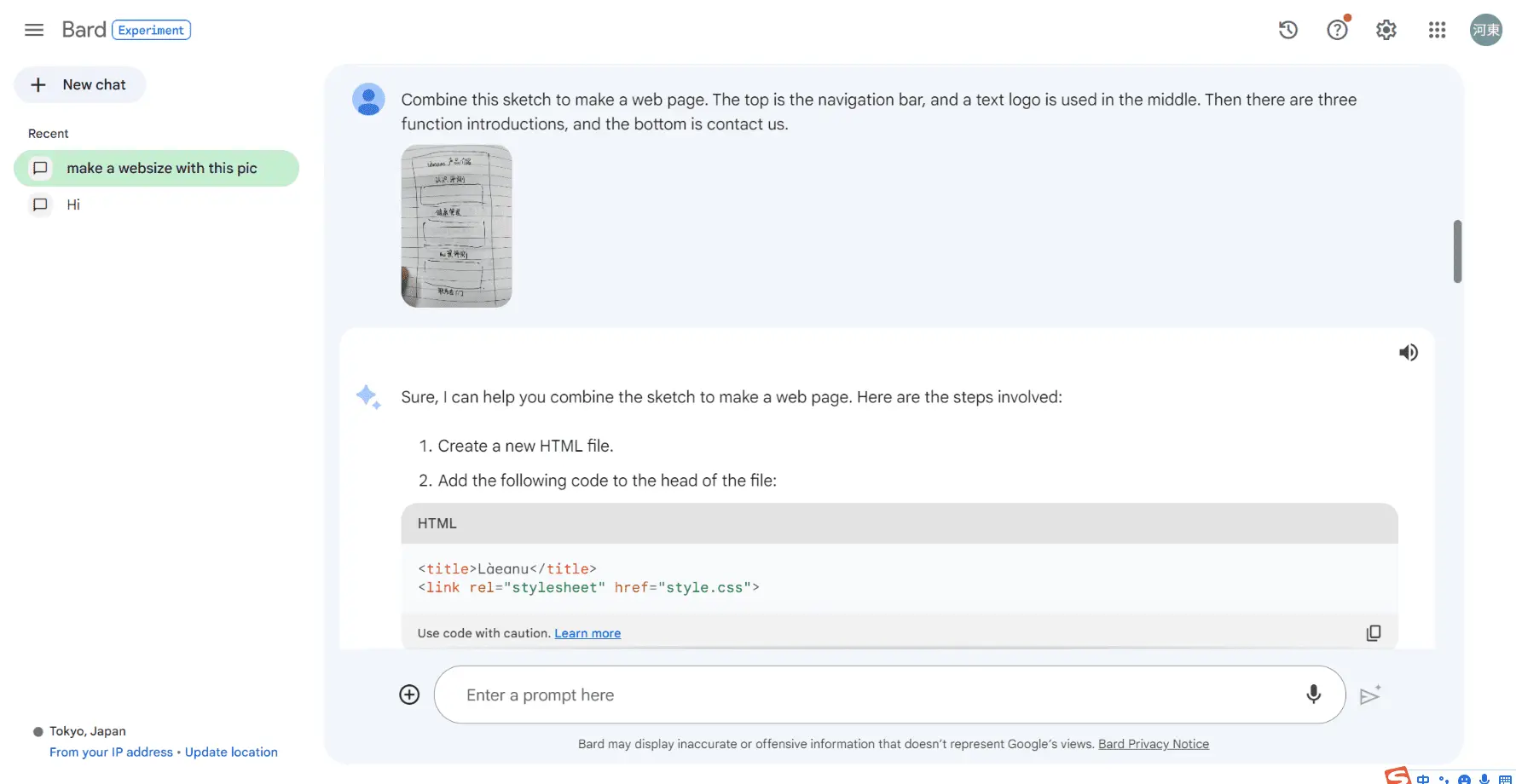 演示地址1:bard草图建站地址