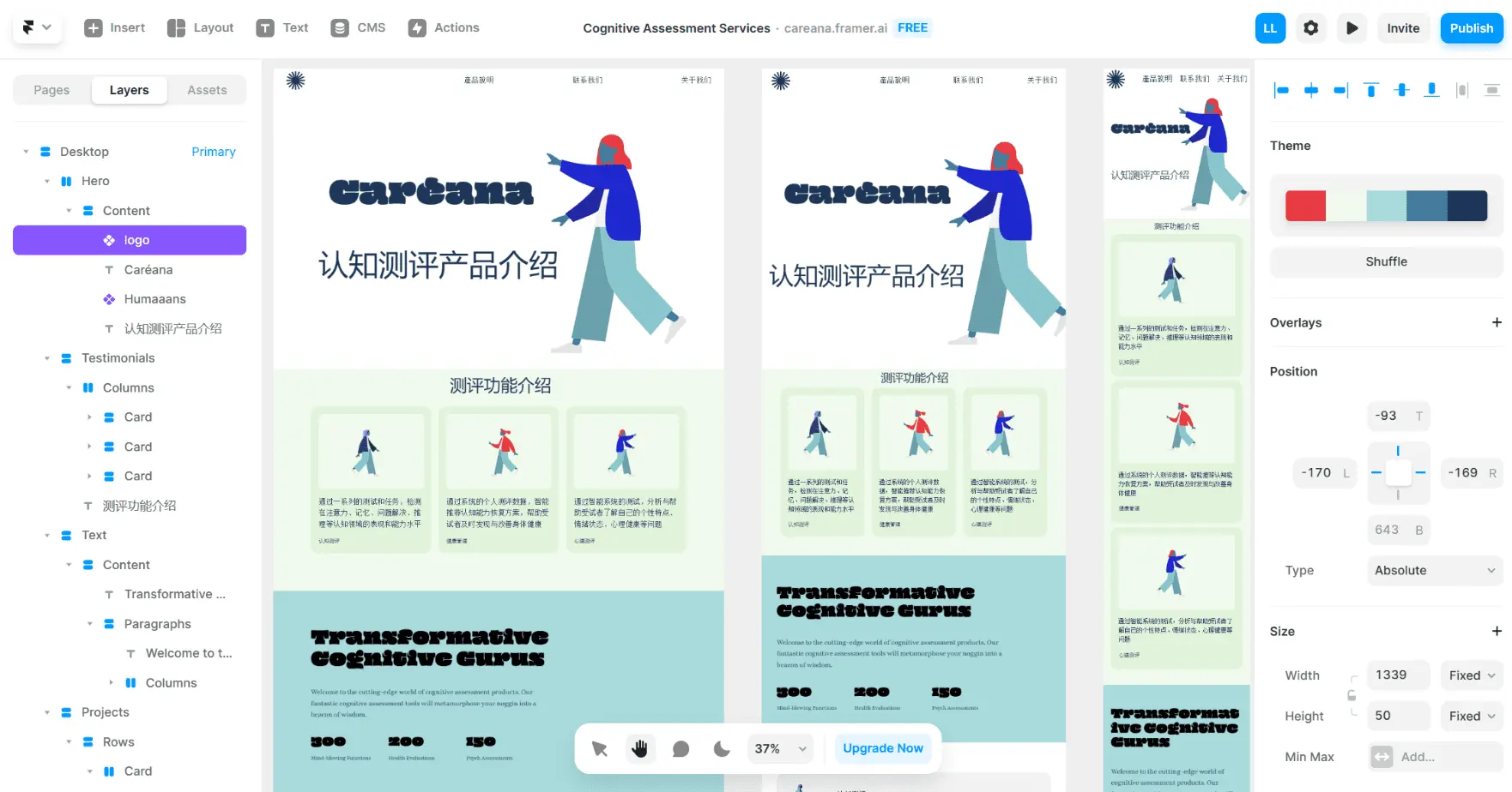 演示地址2:https://careana.framer.ai/
