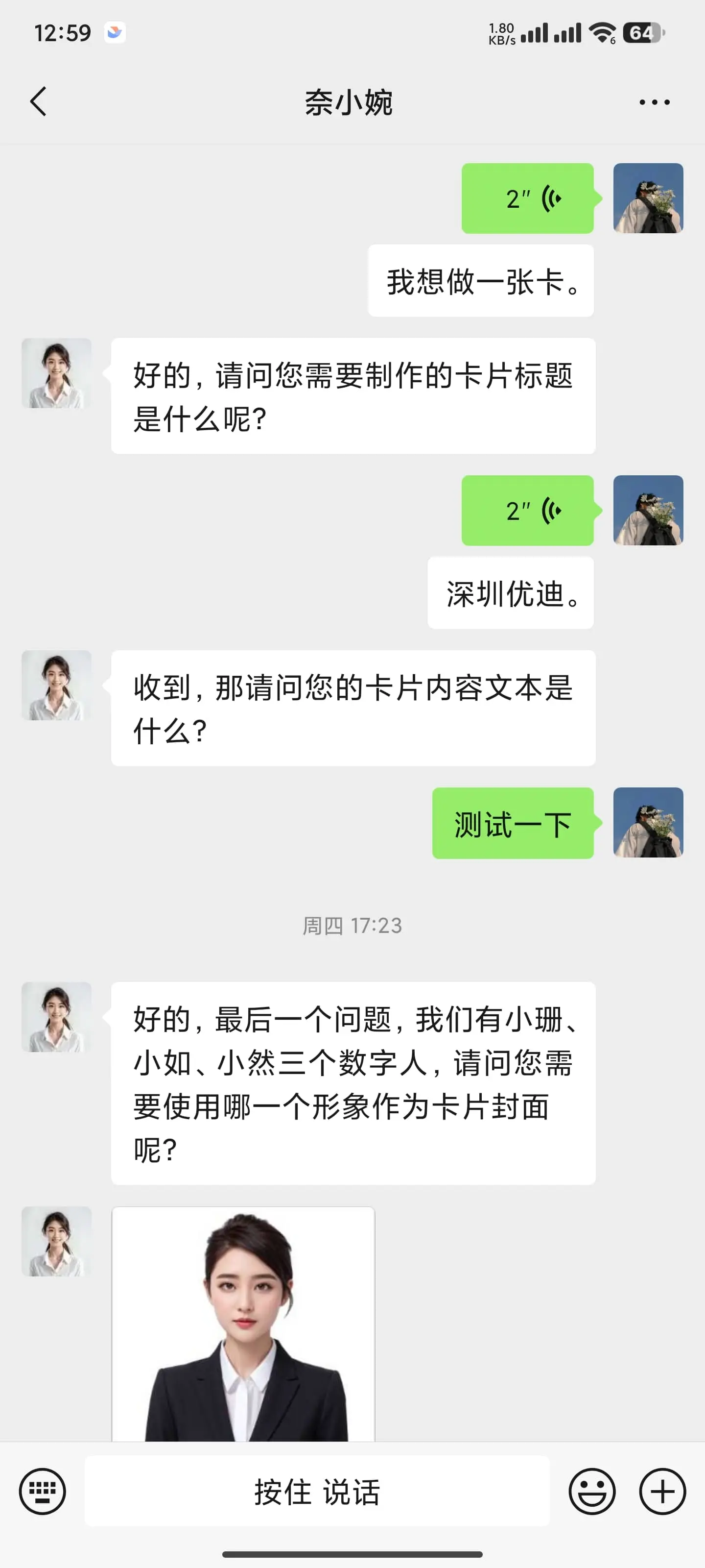 制卡需要用户主动输入信息,比如:样式、标题、数字人等卡片信息,流程比较复杂。